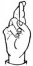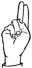 На ћирилици написано ХРАНИМИР ОБРАДОВИЋ састоји се из 17 слова [?]. Исписано ћириличном једноручном азбуком за глувонеме:
